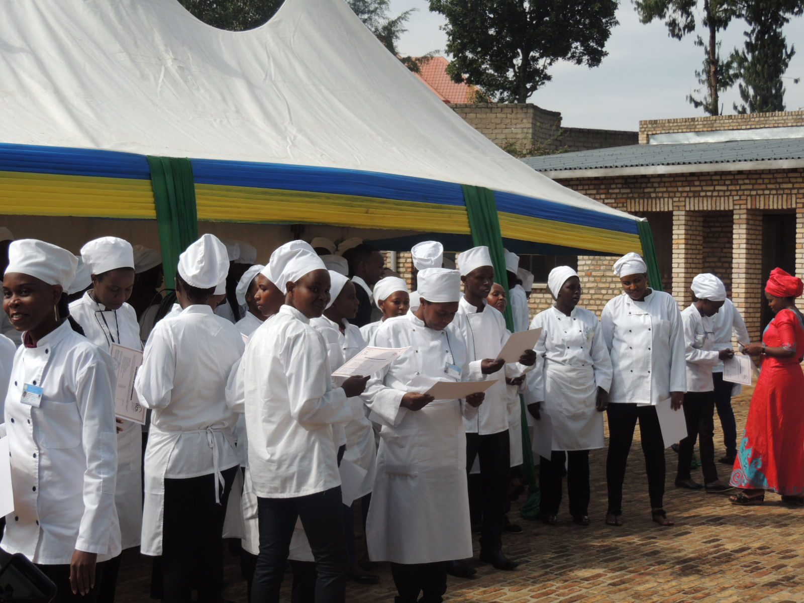 Ruanda-Hilfsprojekte Berufsbildungszentrum Rerumwana / Give Youth a ChanceSecondary School St. Peter Igihozo Im Berufsbildungszentrum Rerumwana:Die zukünftigen KöchInnen bei der Arbeit Im Berufsbildungszentrum Rerumwana: Gruppenfoto mit stolzen Lern-KöchInnen Im Berufsbildungszentrum Rerumwana: Die KöchInnen erhalten ihr Abschlusszeugnis Secondary School St. Peter Igihozo:Der Schlafsaal der Mädchenschule (Baufoto) Secondary School St. Peter Igihozo:Der PC-Raum der Schule, eingerichtet 2012 mit Spenden aus Nürnberg Secondary School St. Peter Igihozo:Das Verwaltungsgebäde mit Büro des SchulleitersSekretariat, Bibliothek und Lehrerzimmer